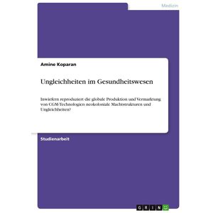 Binding : paperback, Edition : 1., Label : Ungleichheiten im Gesundheitswesen : Inwiefern reproduziert die globale Produktion und Vermarktung von CGM-Technologien neokoloniale Machtstrukturen und Ungleichheiten?, medium : paperback, numberOfPages : 32, publicationDate : 2025-05-09, languages : german, ISBN : 3389129146