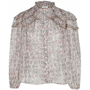 Damen Bluse aus gerafftem Baumwollmischgewebe Rundhalsausschnitt mit gerafften Abschlüssen Knopfverschluss auf der Vorderseite Geraffte Details vorne und an den Schultern Lange Ärmel mit feinen, geknöpften Manschettenabschlüssen Abgerundeter Saum Lockere Passform Ethno-Muster Farbbezeichnung: Ecru Material: 80% Baumwolle, 20% Viskose